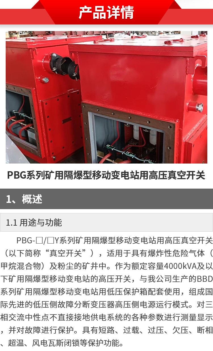 威達(dá)變壓器 PBG系列礦用隔爆型移動變電站用高壓真空開關(guān)